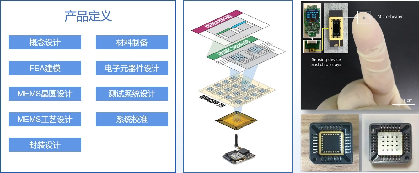 流片成功率:>40%;溫度測量精度:<1℃;加熱功耗:<50mW;升溫降溫迅速:≈200℃/秒;響應(yīng)速度:<7s;靈敏度:<10mg/m3,無交叉敏感性;防護等級:IP65封裝;封裝尺寸:≤5×5cm。